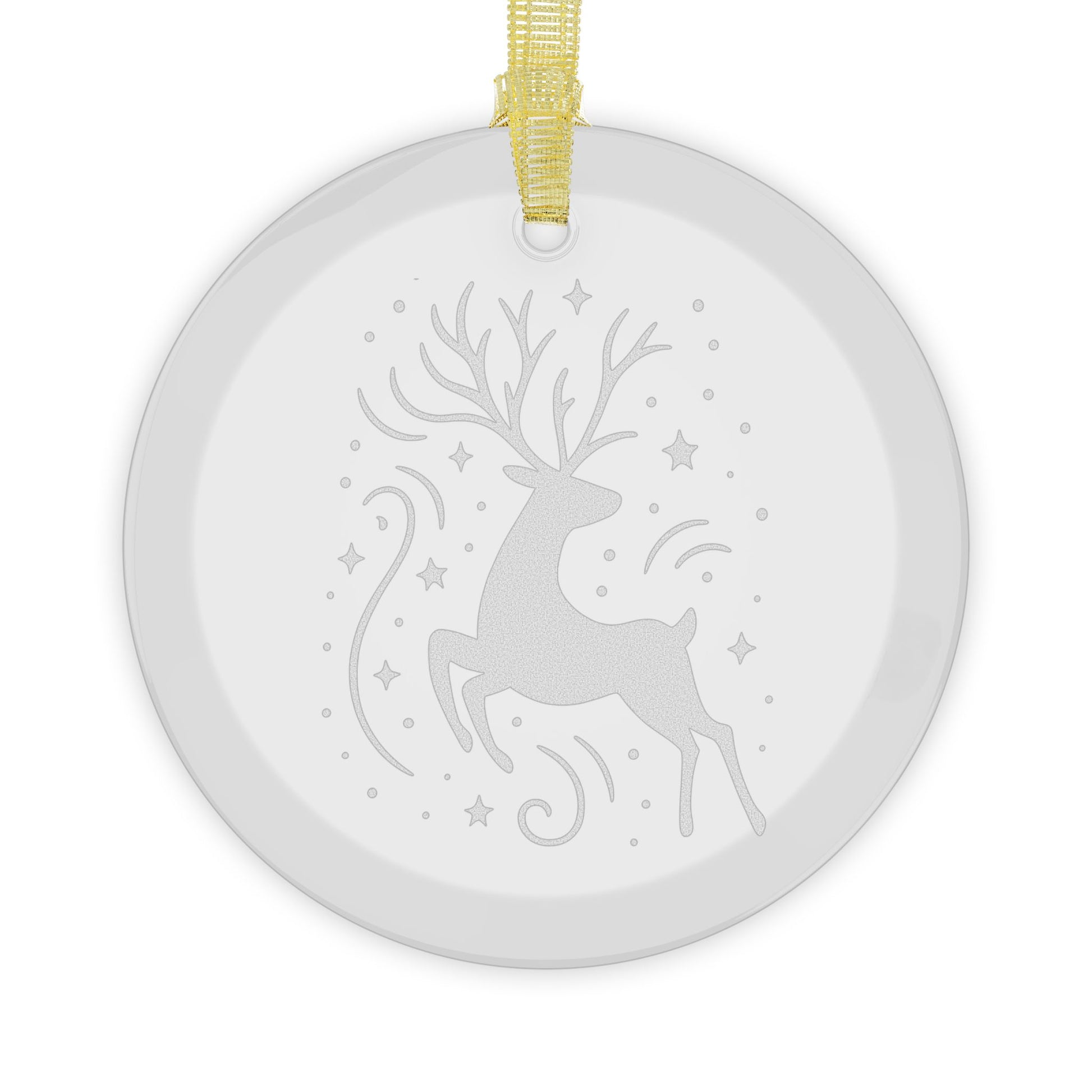 These aren't just ornaments; they're small treasures that capture the essence of a starry Christmas Eve. The silhouette of the majestic reindeer, hopping through the sparkles, evokes joy and winter wonder.